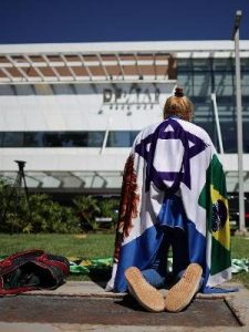 A presença de Bolsonaro não atraiu a militância à porta do hospital. Há uma única apoiadora enrolada na bandeira de Israel. Nem mesmo youtubers bolsonaristas apareceram.