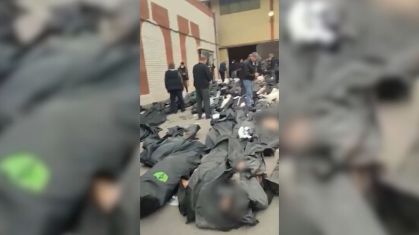 Imagens divulgadas no domingo (11) mostraram corpos espalhados pelo chão, em uma rua em frente ao Centro Médico Legal de Kahrizak, em Teerã, capital do Irã, onde um necrotério foi improvisado para receber as vítimas da onda de protestos antigovernamentais, que varrem o país há duas semanas.