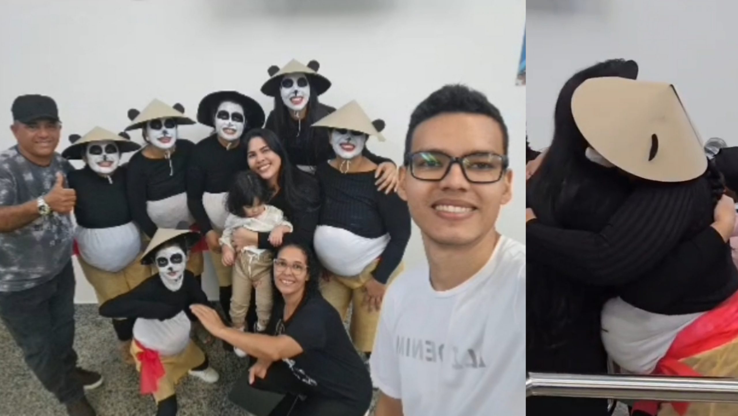 A iniciativa partiu de Áquila, que, com o apoio da mãe e de uma irmã da igreja — acompanhada de seus filhos — decidiu preparar uma surpresa especial para recepcionar a irmã que chegava de Manaus, junto com o sobrinho. Para marcar o momento, o grupo se fantasiou de panda, transformando a chegada em uma cena inusitada e carinhosa.